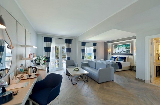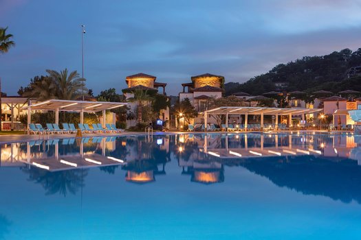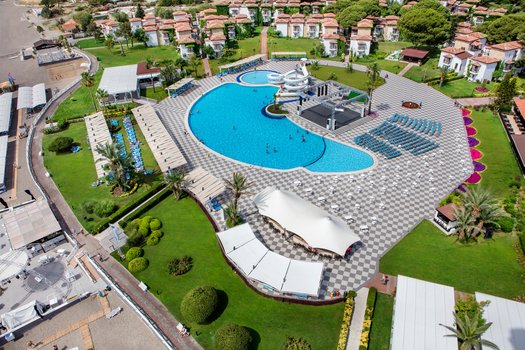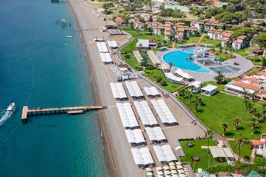 Пятизвёздочный отель, расположенный в 7 км от Кемера, идеально подходит как для семей, так и для молодежи. На первой линии у моря находится его собственный галечный пляж длиной 300 метров, с удобным входом в воду, шезлонгами под навесами, душевыми и кабинками для переодевания. Пляж предлагает разнообразные водные развлечения, включая пенные вечеринки, а в пляжном баре подают закуски и напитки. Отель также располагает 7 бассейнами — тремя взрослыми и четырьмя детскими, а для любителей аквагорок работает аквапарк с 8 спусками. Размещение предлагается в бунгало и корпусе с просторными номерами: от стандартных до премиум-класса, все с балконами или террасами, современной мебелью и приятным дизайном. Концепция «премиум всё включено» охватывает основной ресторан с шведским столом и четыре ресторана а ля карт, где готовят блюда мировой кухни. Кафе, бары и кондитерская на территории дополняют выбор, а для гостей премиум-номеров ужин в а ля карт ресторане включен в программу. Для детей здесь оборудованы игровые зоны, мини-клуб с занятиями под присмотром аниматоров, детское меню и отдельные столы в ресторане. Вечером для маленьких гостей устраивают мини-дискотеку, а в дневное время — творческие мастер-классы и активные игры. По запросу доступны услуги няни. Для взрослых организованы спортивные зоны: теннисные корты, фитнес-центр, площадки для волейбола и баскетбола, турецкая баня и сауна. Команда аниматоров ежедневно проводит занятия по аэробике, игры и турниры по дартсу, бочча и стрельбе, а по вечерам гостей приглашают на шоу-программы и дискотеки. На территории работают салон красоты и торговый центр с магазинами, где можно приобрести сувениры и товары для отдыха. Также доступны прокат велосипедов, автомобилей и самокатов для самостоятельных прогулок. Отель удобно расположен для тех, кто хочет исследовать окрестности: до центра Кемера с магазинами, рынком и ресторанами легко добраться на автобусе, который отправляется неподалёку.