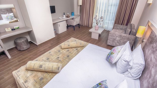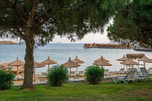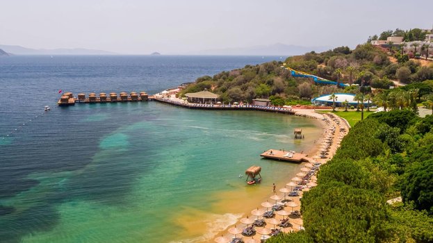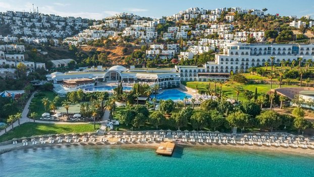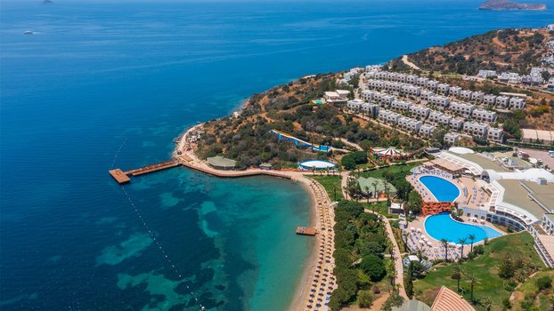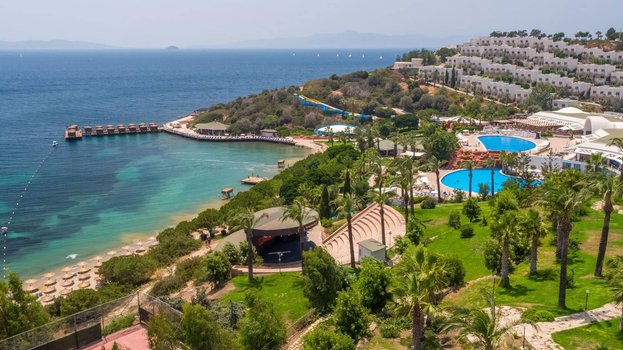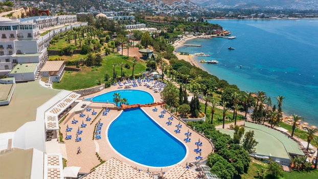 Отель Yasmin Bodrum, расположенный на побережье Эгейского моря, предлагает своим гостям уникальные возможности для отдыха, включая доступ к частному пляжу длиной в километр, три открытых и два крытых бассейна. Также на территории есть деревянная терраса с беседками, а спа-центр оснащен турецкой баней. Номера отеля оборудованы кондиционерами, спутниковым ТВ и мини-барами. Из большинства номеров открывается вид на море через окна от пола до потолка. Ванные комнаты комплектуются фенами и бесплатными туалетно-косметическими принадлежностями. В ресторане отеля устраивают завтраки, обеды и ужины в формате «шведский стол» с блюдами международной кухни. Доступен также ресторан а ля карт и несколько баров, где предлагают разнообразные напитки. Гости могут заниматься теннисом на одном из трех кортов, воспользоваться фитнес-центром или аквапарком. Для релаксации предлагаются шезлонги, массажные процедуры и сауна. Дополнительно доступны игры в пляжный волейбол и бильярд, а для детей оборудована игровая площадка. Отель находится в 55 км от аэропорта Милас-Бодрум, предоставляется платный трансфер от/до аэропорта.