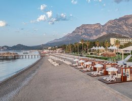 Отель находится в центре Гейнюка, в 8 км от Кемера, у подножия Таврских гор, занимая территорию в 100 000 м². Гостей размещают в трехэтажном здании с номерами, где можно выбрать стандартные комнаты с видом на море или бассейн, а также семейные двухуровневые варианты. Отельный пляж из песка и гальки расположен в 200 метрах и оснащен душевыми и кабинками для переодевания. Море здесь чистое, с пологим входом. Для тех, кто предпочитает бассейны, доступны два больших бассейна, полуолимпийский бассейн и два бассейна с горками для взрослых и детей. Основной ресторан, снэк-рестораны, кондитерская и бары предлагают питание на любой вкус. Дополнительно гости могут посещать а-ля карт рестораны по предварительной записи, а для детей есть специальное меню. Детям отель предоставляет мини-клуб, киносеансы, детские площадки и дискотеки. Родители могут воспользоваться услугами няни и взять напрокат коляску. Взрослые гости могут расслабиться в СПА, турецкой бане, сауне и джакузи, а также посетить вечерние шоу-программы, дискотеки и караоке. Отель оснащен бесплатным Wi-Fi в лобби и общественных зонах. На территории находятся магазины, сувенирные лавки и бутики. Рядом с отелем можно посетить «Динопарк», различные парки и кафе, что делает отдых здесь насыщенным и удобным.