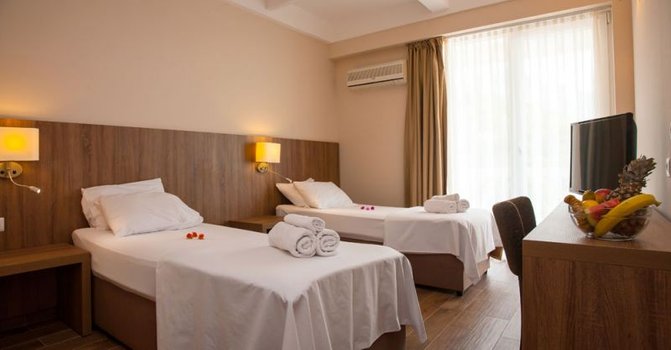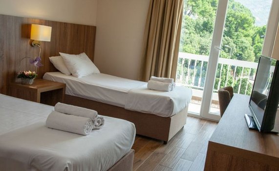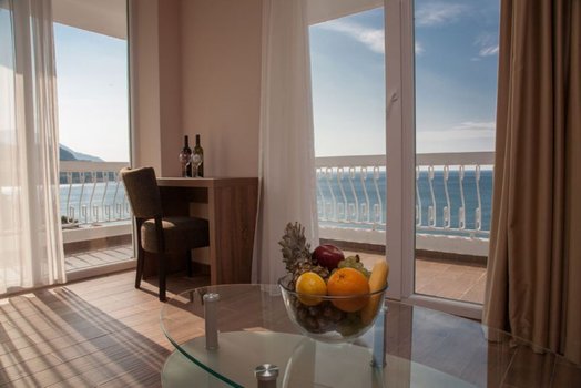 Отель находится в курортном местечке Сутоморе, на берегу моря, на главной пешеходной зоне, примыкающей к пляжу.