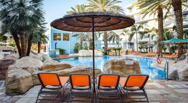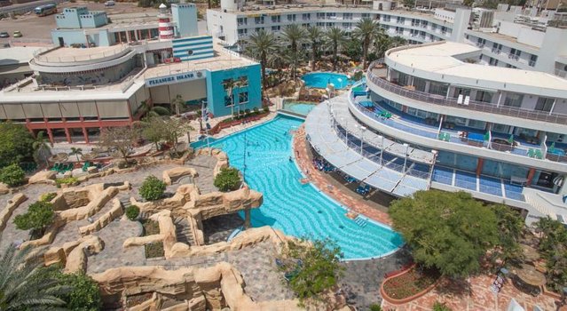 Отель Club Hotel Eilat находится в северной части Эйлата, недалеко от побережья Красного моря. От главного пляжа его отделяют всего несколько минут пешей прогулки. В этом районе города сосредоточены торговые галереи, кафе и культурные объекты. Поблизости расположены интересные достопримечательности, включая Подводную обсерваторию, Дельфиний риф и развлекательный центр Ice Mall. Гостиница представляет собой большой комплекс с внутренней территорией, включающей несколько бассейнов и аквапарк. Водные горки и аттракционы делают пребывание в отеле привлекательным для семей с детьми. Рядом с бассейнами находятся зоны отдыха с шезлонгами, а также бары, где можно перекусить и выпить прохладительные напитки. В спа-центре гостям предлагают широкий спектр процедур. В перечень входят массаж, уход за кожей, косметические процедуры. Также на территории есть тренажерный зал и сауна. Вечером работает ночной клуб с развлекательной программой. Номера оборудованы кондиционерами, телевизорами, мини-кухнями и балконами. Для маленьких гостей предусмотрены детская площадка и игровая комната. По запросу предоставляются детские кроватки. Если бы вы провели здесь день, утро могло бы начаться с прогулки до пляжа. После нескольких часов на солнце — отдых у бассейна или в тени сада. Днем — обед в одном из ресторанов Эйлата и экскурсия в Подводную обсерваторию. Вечером можно расслабиться в спа или присоединиться к вечерней программе в клубе. Club Hotel Eilat подходит для семейного отдыха, поездок с друзьями и тех, кто предпочитает проводить отпуск с комфортом вблизи моря и городской инфраструктуры.