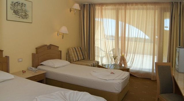 Duni Belleville Hotel - All Inclusive расположен на побережье Чёрного моря в комплексе Duni Royal, рядом с Созополем. Здание выделяется оригинальной архитектурой: с террас и балконов открывается вид на залив и песчаный пляж. До моря можно дойти пешком за несколько минут. Номера оформлены в современном стиле. В каждом есть кондиционер, телевизор, мини-бар, телефон, балкон и ванная комната с набором туалетных принадлежностей. Интерьер выполнен в тёплых тонах, что создаёт спокойную атмосферу. На территории работает ресторан, где подают блюда итальянской и болгарской кухни. Завтраки и ужины проходят по системе «шведский стол». Есть бары и кафе, где можно провести вечер с напитками и лёгкими закусками. Пляж оборудован шезлонгами и зонтами, предусмотрены зоны отдыха и пункты водных развлечений. Гости могут пользоваться инфраструктурой комплекса Duni Royal: бассейнами, аквапарком, спортивными площадками и теннисными кортами. Вечером проводятся музыкальные программы и танцевальные вечера. В нескольких километрах расположен старый Созополь — город с узкими улицами, древними храмами и музеями. Здесь работают кафе и рестораны с видом на море, где подают свежие морепродукты и традиционные блюда региона. Если вы остановитесь в этом отеле, утро начнётся с вида на залив и шума волн. После завтрака можно прогуляться к морю и провести время на пляже. Днём стоит отправиться в Созополь, чтобы увидеть старую часть города и насладиться его атмосферой. Вечером приятно вернуться, поужинать на террасе и посмотреть, как солнце опускается над морем. Такой день подарит ощущение спокойствия и лёгкости, характерное для отдыха у моря.