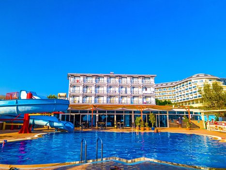 Отель находится на расстоянии 20 км от центра города Сиде. Отель привлекает туристов, ищущих спокойствие и непосредственную близость к морю. Однако Elysium Elite Hotel не подходит для семейного отдыха с маленькими детьми, так как для них здесь мало развлечений. Территория отеля небольшая, но аккуратная и приятная. Здесь расположены здания и бунгало для проживания гостей, а также бассейн с горкой и детским уголком. Три четырехэтажных здания расположены на расстоянии 5-7 метров друг от друга. Ближайший к морю и бассейну корпус - номер 3, самый дальний - номер 1, где находится рецепция. Гостям доступны стандартные и семейные номера. Номера на первых этажах имеют террасу и отдельный вход, остальные - балкон. Комнаты светлые, с простой мебелью. Бесплатный Wi-Fi доступен только в зоне рецепции, и там сигнал слабый. Пляж находится всего в 70 метрах от территории Elysium Elite Hotel. Пляж невелик, и шезлонгов здесь недостаточно. Для отдыха места часто не хватает. Песок и мелкая галька образуют пляж и вход в воду. Вход в море резкий: уже на 4-5 шагах от берега глубина значительная. Море прозрачное, поэтому некоторые гости наблюдают за разноцветными рыбами в масках. На территории отеля работают ресторан и бар у бассейна. Гости, как правило, довольны питанием: выбор и качество блюд соответствуют 4-х звездочному статусу отеля. В ресторане есть мясные и рыбные блюда, жарят на гриле, много овощей и фруктов, а также разнообразные десерты. Кофе в ресторане доступен почти круглосуточно. Если бы вы оказались в этом отеле, вам бы предложили заняться аквааэробикой, поиграть в водное поло, настольный теннис и волейбол. Вечером проходят шоу и конкурсы, а затем есть возможность продолжить веселье на ночной дискотеке в городе. Для маленьких гостей есть детская площадка, мелкий бассейн и вечерний мини-диско. В отеле также есть хамам и сауна. За дополнительную плату можно воспользоваться услугами массажа или взять напрокат велосипед. В нескольких минутах ходьбы от отеля находятся магазины и аптека. По воскресеньям работает продуктовый рынок. Недалеко от отеля есть автобусная остановка, откуда можно доехать до поселка Манавгат, где по понедельникам открывается турецкий базар.