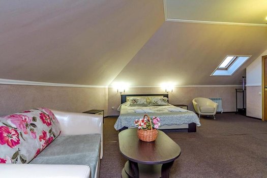 Гостевой дом предлагает отдыхающим 25 номеров, 4 из которых класса люкс. Номера расположены на четырёх этажах. Каждый номер соответствует современным требованиям и располагает всеми удобствами. Гостям предоставляются светлые номера со сплит-системами, телевизорами, холодильниками и чайниками. Во дворе есть деревянная беседка и мангал. Представьте, что вы остановились в этом гостевом доме. Утро можно начать с завтрака в просторном номере, затем прогуляться по уютному двору. Днем можно воспользоваться мангалом и приготовить обед на свежем воздухе. Вечером приятно провести время в беседке или отдохнуть в номере, наслаждаясь комфортом и удобствами.