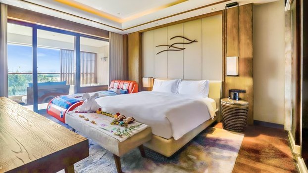 Отель InterContinental Sanya Haitang Bay Resort находится в живописной бухте Хайтан, известной как одно из престижных национальных побережий Китая. Недалеко от отеля расположен крупнейший в стране торговый центр беспошлинной торговли, который связывает отель с различными торговыми точками. С недавним открытием торгового центра Sanya Phase II в 2019 году этот район стал центром туристического и развлекательного шоппинга. Архитектура отеля выполнена в современном стиле с элементами традиционного хайнаньского дизайна и окружена пышными садами. Комплекс представляет собой фигуру дракона, расположенного на пляже, и занимает площадь 150 000 квадратных метров. Все 295 номеров отеля предлагают открытую планировку с панорамным видом на Южно-Китайское море. Номера площадью от 88 кв. м украшены тропическими арт-объектами и имеют просторные спальни и открытые балконы с ваннами, с которых открывается великолепный вид на океан. В отеле работает 7 ресторанов и баров, где гости могут насладиться кулинарными изысками со всего мира. Ресторан-океанариум Aqua предлагает гостям уникальный опыт — насладиться морскими деликатесами, наблюдая за живым подводным миром, включая тропических рыб и выступления русалок, что особенно популярно среди влюбленных пар и семей. Для молодых гостей в отеле функционирует детский клуб Planet Trekkers, который является своего рода мини-курортом. Обновленный в 2018 году клуб площадью 500 квадратных метров предлагает детям более 50 развлекательных и образовательных программ, участие в которых бесплатно.
