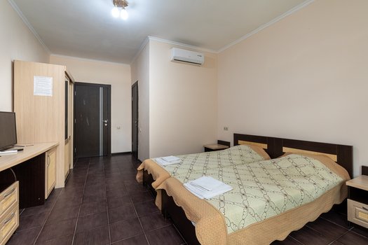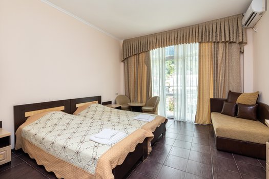 Отель «Руслан» начал принимать посетителей в 2012 году и расположен на известном проспекте Владислава Ардзинба в городе Гагра. Это здание вблизи береговой линии, всего в десяти шагах от морской волны, делает его идеальным местом для отдыха у воды. Архитектура и интерьер отеля напоминают о курортах Средиземноморья. Просторный внутренний дворик украшен фонтаном, пышными пальмами и уединенными уголками для расслабления, дополненными уютным кафе. Отель работает по сезону и доступен для гостей всех возрастных категорий, предоставляя номера, адаптированные как для взрослых, так и для детей. Многофункциональные диваны в номерах удобно трансформируются из спальных мест в рабочие зоны, комплектуемые столами и креслами. В каждом номере установлены удобства, включая телевизор, холодильник и кондиционер, что гарантирует комфорт вне зависимости от погоды. С террасы отеля открывается завораживающий вид на море. Здесь расположены кафе и бар, где подаются изысканные блюда из европейских и кавказских кулинарных традиций. Отель также предлагает различные развлекательные и оздоровительные услуги, включая экскурсии, прокат спортивного оборудования и услуги трансфера. Представьте, что Вы проводите время в отеле «Руслан». Вы можете исследовать местные пляжи, наслаждаться вечерами на террасе с видом на заход солнца над морем или изучать культурное наследие и гастрономическое разнообразие региона, находящееся в непосредственной близости от отеля. Это место станет прекрасной базой для Вас, если Вы стремитесь к расслабленному, но насыщенному отдыху.