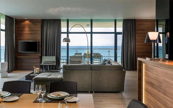 Pullman Sochi Centre 5* — отель премиум-класса, который позволит отдохнуть в роскошных интерьерах и насладиться высококлассным сервисом. Современный гостиничный комплекс находится на первой линии от моря и всего в 22 км от международного аэропорта Сочи (Адлер). Богатый номерной фонд располагает 150 апартаментами. Каждый из них снабжен всем необходимым для истинного комфорта: кроватью королевского размера, телевизором с большим плоским экраном, холодильником, мини-баром, обеденной зоной, а также сейфом. Ванные комнаты с тропическим душем укомплектованы индивидуальными гигиеническими принадлежностями и феном. В элегантном ресторане Sel Marin гостей ждут вкуснейшие блюда средиземноморской кухни. Постояльцы могут продегустировать вина из эксклюзивной коллекции Vinoteca. Фирменные деликатесы и закуски из меню O’bar никого не оставят равнодушными.
