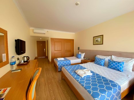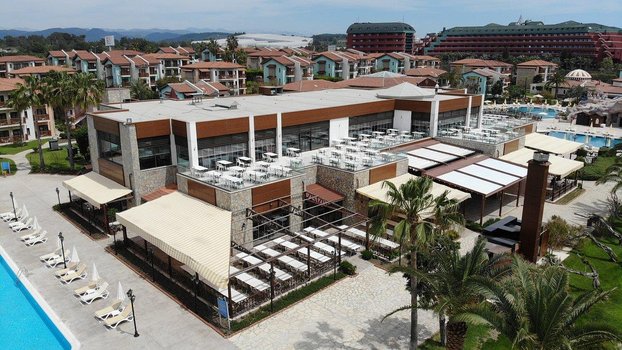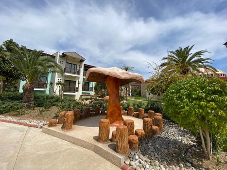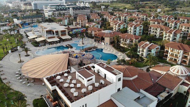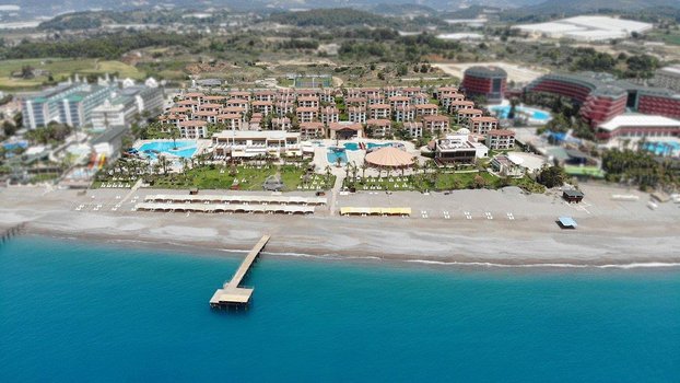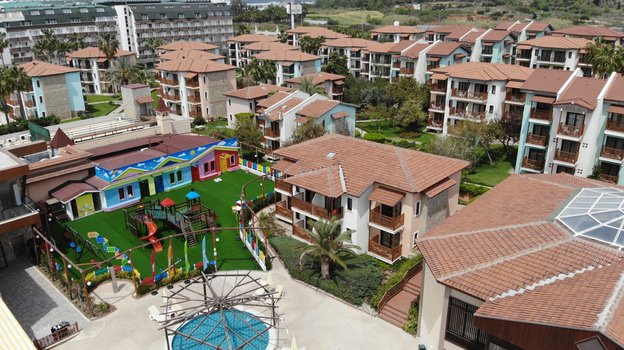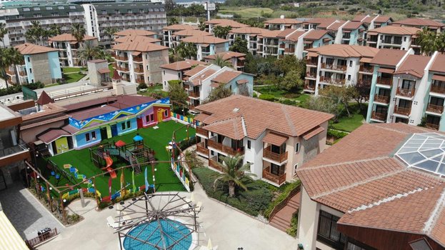 Отель находится в спокойной зоне возле Аланьи, около Авсаллара. Отзывы гостей говорят, что это место идеально подходит для семейного отдыха с детьми. Занимая площадь в 50 000 м², отель состоит из 48 трехэтажных бунгало, что придает ему облик современного дачного поселка. Номера расположены на разных этажах, каждый с отдельным входом. Все они чистые, удобные и хорошо укомплектованы мебелью и техникой. Он находится недалеко от песчано-галечного пляжа. Гости могут спрятаться от солнца под тентами, а также воспользоваться раздевалками и душевыми. Море здесь чистое, вход в море плавный - идеально подходящее для детей. Для более опытных пловцов есть понтон. Два больших бассейна на территории предлагают альтернативу морю, один из которых оборудован водными горками. Отель предлагает всем гостям концепцию "Ультра все включено", работающую круглосуточно. На его территории расположено 5 ресторанов, два из которых предлагают меню а ля карт. В течение пребывания гости могут бесплатно поужинать в ресторане а ля карт один раз. На территории также расположены 5 баров, включая те, что находятся у бассейнов и на пляже. Для детей от 4 до 12 лет в отеле есть мини-клуб. На пляже под тентом для детей оборудована игровая площадка-кораблик с песочницей, горками и игрушками. На территории имеются неглубокие бассейны, сухой бассейн с шариками, батут и мини-зоопарк, а также игровая комната. В течение дня детей развлекают аниматоры разными играми и соревнованиями. Вечером перед началом мини-диско вручаются призы победителям. Взрослые могут провести время, играя в мини-гольф, волейбол, бильярд, теннис, стрельбу из лука. Также доступны сауна, турецкая баня и массаж. Вечером проводятся шоу и дискотека. В отеле имеются магазины, фотосалон и парикмахерская. Каждую пятницу рядом с отелем проходит турецкий базар. Пройдя немного дальше, можно найти более крупный рынок, где можно купить сувениры, турецкие сладости и многое другое. Если бы читатель оказался в этом отеле, он бы мог насладиться панорамным видом на море из своего номера, попробовать местную кухню в одном из ресторанов и принять участие в различных активностях. После дня, проведенного на пляже или у бассейна, он бы мог расслабиться в сауне или турецкой бане, а затем насладиться вечерним шоу или дискотекой. Открытый мир развлечений и отдыха ждет его в этом отеле.