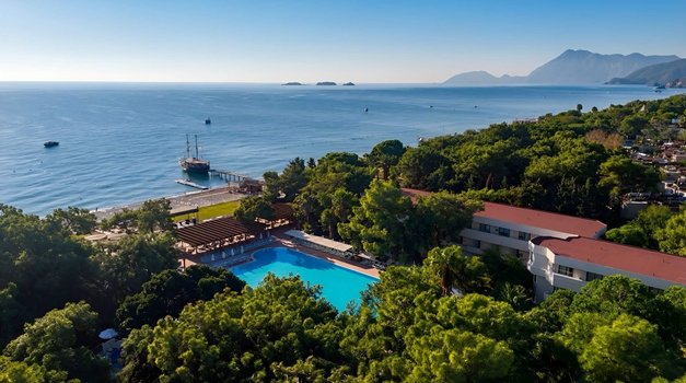 Отель расположен в посёлке Текирова рядом с Кемером. Поблизости работают магазины, по субботам открывается местный рынок. Рядом находятся остановки автобуса и стоянки такси, что упрощает поездки по окрестностям. Отель стоит у моря и занимает компактную территорию. На участке растут деревья, которые дают тень в жаркое время. С побережья часто дует лёгкий морской ветер. Номерной фонд включает стандартные и семейные номера, а также более простые варианты размещения. Часть комнат обновлена, в других сохранилась старая мебель и сантехника. Гости отмечают слабую звукоизоляцию и нерегулярную уборку. Пляж прилегает к территории отеля. Берег покрыт песком, вход в воду с галькой. Лежаков достаточно, но их состояние разное. За отдельную плату доступны пляжные павильоны. На пляже работают душевые, кабины для переодевания, туалет и бар. Питание организовано в основном ресторане по системе общего стола. Ассортимент блюд ограничен. На территории также работают три ресторана с заказом по меню, где выбор шире. В отеле есть три бассейна, зона для занятий спортом, тренажёрный зал и спа-центр. Для детей открыт мини-клуб и игровая площадка. В течение дня проходят развлекательные программы, вечером организуют шоу и музыкальные мероприятия. Рядом с отелем можно прогуляться по посёлку, посетить кафе и рестораны Текировы. В окрестностях популярны морские прогулки, поездки в горы и экскурсии по региону Кемер. Если бы вы оказались в этом отеле, утро началось бы с завтрака и выхода к морю. Днём вы могли бы провести время на пляже или у бассейна, а затем отправиться на рынок или в центр посёлка. Вечером вы бы вернулись на территорию отеля, где проходят развлекательные программы, после чего отдых продолжился бы в номере. Такой формат подойдёт тем, кто планирует активные прогулки и не ограничивается временем только внутри отеля.