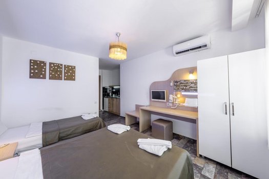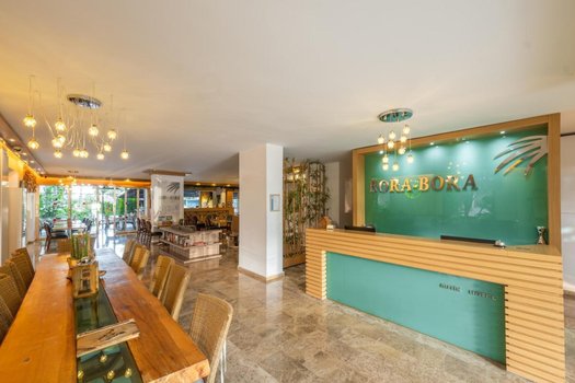 Отель расположен на окраине города Аланья. Рядом с ним — пляж, магазины, аптеки. В пешей доступности есть супермаркет, а по четвергам недалеко открывается базар. Благоустройство и номера На компактной территории отеля царит спокойная атмосфера. Здесь достаточно много зелени, есть уютные уголки для отдыха в тени. Номера для гостей обустроены в главном здании и дополнительном одноэтажном корпусе. Интерьер в комнатах простой, мебель уже не новая, но выглядит аккуратно. Рекомендуем выбирать номера в дополнительном корпусе — они более просторные и прохладные, с собственной террасой. У моря От отеля до пляжа всего 2 минуты ходьбы. Нужно только перейти через дорогу по подземному переходу. Берег там песчаный, заход в море плавный. Есть душ, туалет и раздевалки. Шезлонги и зонтики доступны гостям отеля бесплатно. Рядом находятся кафе, где можно взять напитки и перекусить за отдельную плату. «Всё включено» Питание в отеле простое и не очень разнообразное, но на шведском столе в ресторане на обед и ужин всегда есть мясо или рыба, овощные салаты, разные закуски, супы, десерты, сезонные фрукты. Юных гостей порадует постоянное наличие фастфуда: картофеля фри, наггетсов, бургеров. В баре предлагают напитки местного производства и хорошее пиво. До позднего вечера отдыхающим доступны кофе, чай и соки из аппарата. Инфраструктура и анимация На территории отеля есть бассейн с огороженной детской секцией, теннисный стол и игровая площадка. Каждый вечер для юных гостей проводят мини-дискотеку, а раз в неделю в отель приезжает выступать местный музыкальный коллектив. Во всех общественных пространствах и в номерах гостям доступен бесплатный Wi-Fi. Bora Bora Butik — отель с небольшим набором услуг для экономичного и спокойного отдыха. Здесь работает вежливый персонал, предлагают неплохое питание и достаточно комфортные номера. Учтите, что из аэропорта на групповом трансфере вам придётся ехать почти 3 часа. Чтобы сократить время в пути, советуем рассмотреть возможность заказа индивидуального транспорта.