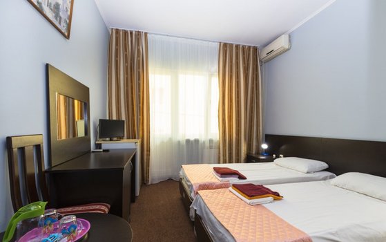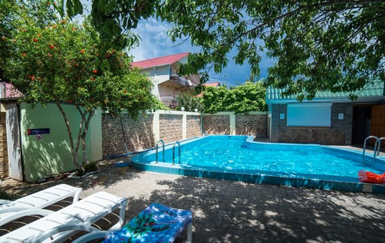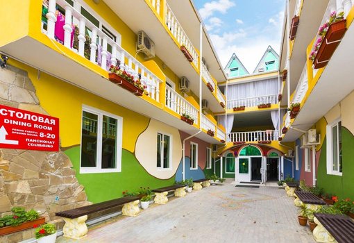 "Quyosh" mehmonxonasi Adler tumanida joylashgan bo'lib, Adler okeanariumiga yaqin. Atrofda ko'plab kafelar, restoranlar va do'konlar mavjud. Sochi-park va Olimpiya parkiga 30-45 daqiqada yetib borish mumkin. Xalqaro aeroportgacha bo'lgan masofa 11 kilometrni tashkil qiladi. Mehmonxona uch qavatli binodan iborat bo'lib, lift yo'q va 2500 kvadrat metr maydonga ega bo'lgan obodonlashtirilgan hududda joylashgan. Barcha xonalarda dush, konditsioner, televizor, mini-sovutgich va elektr choynak mavjud. Yozda hududda oshxona ishlaydi, kechqurun esa yozgi ayvon ochiladi. Mehmonlar sport jihozlari va stol tennisi bilan shugʻullanishlari mumkin. Simsiz internet mavjud. Bolalar uchun toʻshak-manejlar, aravachalarga va ovqatlash stullari taqdim etiladi. Mehmonxonada 30 kishilik konferents-zal mavjud. Shahar toshli plyaji mehmonxonadan 250 metr narida joylashgan. Plyajda шезлонг, soyabon, kreslolar va almashtirish kabinalaridan foydalanish mumkin. "Quyosh" mehmonxonasiga kelganingizni tasavvur qiling. Kuningizni mahalliy plyajga borish bilan boshlashingiz mumkin, keyin yaqin atrofdagi kafelardan birida tushlik qilishingiz mumkin. Tushlikdan so'ng Olimpiya parki yoki Sochi-parkiga sayohat qilishingiz mumkin, turli xil attraksionlar va ko'ngilochar joylardan zavqlaning. Kechqurun mehmonxona qulay ayvonida boshqa mehmonlar bilan kunlik sarguzashtlarni muhokama qilishingiz mumkin.