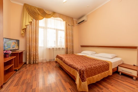 "Imperiya" sanatoriy-oziqlantirish majmuasi Yevpatoriyada, shahar markazidan unchalik uzoq bo'lmagan joyda joylashgan. Majmua yuqori xizmat darajasi bilan mashhur bo'lib, oilaviy, yoshlar va biznes dam olish uchun mos keladi. "Imperiya" tibbiy markazining asosiy yo'nalishi — yurak-qon tomir, asab, nafas olish va harakat-tayanch tizimlari, shuningdek, me'da-ichak trakti va quloq-burun-tomoq kasalliklarini davolash va oldini olishdir. Malakali mutaxassislar mehmonlarni sog'lomlashtirish uchun tabiiy resurslarning shifobaxsh xususiyatlaridan foydalanadilar. "Imperiya" mehmonxonasining to'rt qavatli binosi 66 xonada 200 mehmonni qabul qilish imkoniyatiga ega bo'lib, har bir xona qulay yashash uchun barcha zarur jihozlarla ta'minlangan. "Imperiya" majmuasida yopiq basseyn, finlyandiyalik sauna, bolalar uchun o'yin xonalari va maydonchalari mavjud. Professional animatorlar har yoshdagi mehmonlar uchun muntazam ravishda ko'ngilochar tadbirlar tashkil qiladilar. Dam oluvchilar uchun bepul avtoturargoh va ijaraga transport xizmatlari taklif etiladi. Majmuada restoranlar, kafelar va bilyard klubi faoliyat ko'rsatmoqda. Majmuadan atigi 30 metr narida joylashgan qumli plyaj qulay dam olish uchun barcha zarur jihozlarla jihozlangan. Tasavvur qiling-a, siz "Imperiya" majmuasida qoldingiz. Kunningizni qirg'oq bo'yida sayr qilish bilan boshlashingiz mumkin, keyin tibbiy markazda davolanish protseduralaridan o'tishingiz, so'ngra saunada dam olish yoki basseynda suzishingiz mumkin. Kechqurun ko'ngilochar dasturlarda qatnashishingiz yoki bilyard o'ynashingiz mumkin. Bu majmua faol va sog'lom dam olish uchun barcha imkoniyatlarni taqdim etadi.