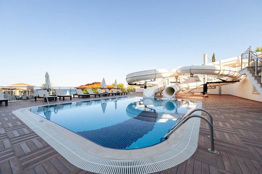 Mehmonxona Alaniya tumanidagi Okurjalar qishlogʻida joylashgan va oilaviy dam olish uchun tavsiya etiladi. Majmua 20 000 m² maydonni egallagan va balandlikda joylashgan. Mehmonxona hududida uchta ochiq basseyin mavjud, ulardan biri bolalar uchun suv toʻgʻonlari bilan jihozlangan. Mehmonlarga bir nechta etti qavatli binolarda joylashgan standart va oilaviy xonalar taklif etiladi. Asosiy restoran shved stoli shaklida taomlarni taklif qiladi va "hammasi qoʻshilgan" kontseptsiyasi 4 barga tegishli. Mehmonxonada qoʻshimcha toʻlov evaziga mavjud boʻlgan ikkita à la carte restoran mavjud, biroq bir hafta yoki undan koʻproq vaqt uchun xona band qilgan mehmonlar oldindan bron qilgan holda ularni bir marta bepul tashrif buyurishlari mumkin. Plyaj mehmonxonadan 250 metr narida joylashgan. Dengizga borish yoʻli pastga qarab, orqaga esa kun boʻyi qatnaydigan bepul avtobusda qaytish mumkin. Plyaj qum-toʻshli boʻlib, suvga tik kirishga ega, bu esa snorkeling va divingni yaxshi koʻradiganlar uchun juda qulay. Plyajda barcha mehmonlar uchun yetarli miqdorda shezlonglar mavjud. Kun davomida mehmonlarni animatorlar koʻngil ochadi. Kun basseyinda akvaaerobika bilan boshlanadi, shundan soʻng sayyohlar sport oʻyinlari, stol tennisi, bilyard turnirlarida qatnashishlari va plyajdagi suv oʻyinlaridan foydalanishlari mumkin. Dam olish kunlari mehmonxonada koʻpikli kechalar, kechqurun esa diskotekalar va amfiteatrdagi shoular tashkil etiladi. Mehmonlar bepul mavjud boʻlgan hammom va saunada dam olishlari yoki qoʻshimcha toʻlov evaziga SPA-salon xizmatlaridan foydalanishlari mumkin. Shuningdek, hududda fitnes-zal mavjud. Bolalar uchun mehmonxonada oʻyin maydonchasi, bolalar basseyini va 4 yoshdan 12 yoshgacha boʻlgan bolalar uchun mini-klub mavjud. Rus tilida soʻzlashuvchi animatorlar bolalarga ijodiy mashgʻulotlar va oʻyinlar taklif etadi. Kechqurun yosh mehmonlar uchun diskotekalar tashkil etiladi. Restoranda maxsus bolalar menyusi, baland stullar mavjud, ota-onalar esa qoʻshimcha toʻlov evaziga dada xizmatidan foydalanishlari mumkin. Mehmonxona hududida bepul internet mavjud. Majmua yaqinida doʻkonlar, bozor va dam olish mahsulotlari, meva va suvenirlar sotib olish mumkin boʻlgan kiosklar joylashgan. Tasavvur qiling-a, ertalab siz kunni basseyinda akvaaerobika bilan boshlaysiz yoki iliq dengizdan bahramand boʻlish uchun plyajga borasiz. Tushdan keyin atrof-muhitda sayr qilishingiz, mahalliy doʻkonlarni ziyorat qilishingiz, kechqurun esa diskotekada dam olishingiz yoki shou tomosha qilishingiz mumkin.