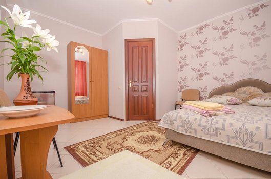 "Sevimli" villasi Feodosiya yaqinidagi Beregovoy qishlog'ida joylashgan. Mehmonxona plyajdan uchinchi chiziqda, tinch joyda, lekin kafelar va avtobus bekatlari yaqinida. Avtobusda 15 daqiqada Feodosiya tarixiy markaziga borish mumkin. Simferopol aeroporti 140 kilometr uzoqlikda, temir yo'l vokzaliga esa 10 daqiqalik yo'l. Mehmonxona ikki qavatli, lift bo'lmagan binolardan iborat. Mehmonlar umumiy sanitariya qismi bo'lgan "Ekonom" yoki shaxsiy hammomli "Standart" xonalardan birini tanlashi mumkin. Barcha xonalarda konditsioner, televizor va Wi-Fi mavjud. Mehmonxonaning birinchi qavatida ovqatlanish zali mavjud bo'lib, u yerda taom buyurtma qilish mumkin. Shuningdek, stol tennisi o'ynash joyi va kir yuvish xizmati ham mavjud. Avtoturargoh mehmonxona oldida joylashgan. Mehmonxonadan 600 metr uzoqlikda qumli plyaj va turli infratuzilma mavjud. U yerda katamaranlar, suv skuterlari ijaraga olish, diving qilish yoki suv attraksionlarini sinab ko'rish mumkin. Plyajda shezlonglar, kreslolar va kiyinish kabinalari mavjud. "Sevimli" villasida ta'til qilayotganingizni tasavvur qiling. Ertalab plyajga borib, suzishingiz va quyoshda yotishingiz mumkin. Tushdan keyin mehmonxonada stol tennisi o'ynashingiz yoki Feodosiya bo'ylab ekskursiyaga chiqishingiz mumkin. Kechqurun esa plyajga qaytib, quyosh botishini tomosha qilishingiz va dengiz bo'yidagi kafeda mahalliy lazzatli taomlardan tatishingiz mumkin.