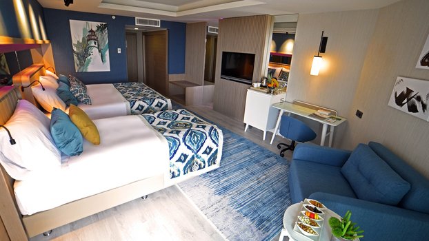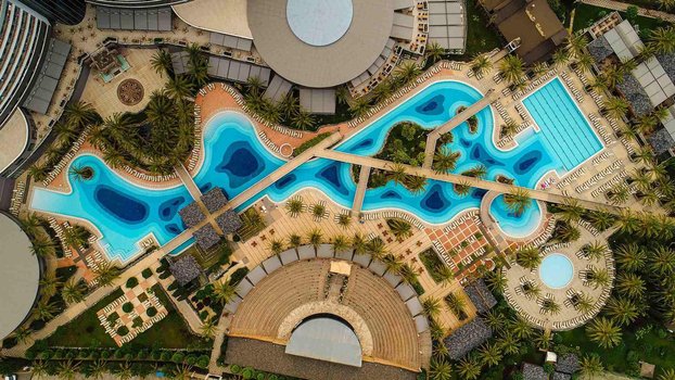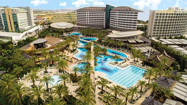 Antaliyaning Lara tumanida joylashgan mehmonxona aeroportdan 15 km uzoqlikda joy olgan bo‘lib, 70 000 m² maydonni egallaydi. Bu yerda turli xil infratuzilma va qulay dam olish sharoitlari taqdim etiladi. Xonalar liftli 10 qavatli binoda joylashgan bo‘lib, undan dengiz yoki atrof-muhit manzarasi ko‘rinadi. Xonalarda yangi ta’mirlash ishlari olib borilgan va zamonaviy mebellar o‘rnatilgan. O‘rtacha toifadagi xonalarda dush kabinalari, kengroqlarida esa vannalar mavjud. Tozalash ishlari muntazam va puxta amalga oshiriladi. Mehmonxonadan qumli-toshli plyajgacha bo‘lgan masofa taxminan 300 metr. Plyajda shezlonglar va soyabonlar mavjud bo‘lib, suvga kirish joyi silliq va qulay. Sho‘ng‘inchilarni qiziqtirsa, pierdan foydalanishlari mumkin. Plyaj barida nafaqat ichimliklar, balki yengil gazaklar ham olish mumkin. Qirg‘oqda voleybol maydonchasi va uskunalar ijaraga beriladigan suv sporti markazi mavjud. Mehmonxonada ovqatlanish asosiy restoranda “shved stoli” tizimi asosida tashkil etilgan. Mehmonlarga bir nechta go‘sht turlari, baliq, yangi mevalar va sabzavotlarni o‘z ichiga olgan turli taomlar taklif etiladi. Maxsus bolalar bufeti va dietik menyu ham mavjud. Xilma-xillik uchun oltita “a la kart” restoranlar mavjud. Kun davomida hovuz yoki plyajdagi barda yengil gazaklanish mumkin. Mehmonxona hududida to‘lqinli hovuz, “yurmaydigan” daryo, bolalar hovuzlari va suvli chiziqlar zonasi kabi basseynlar majmui joylashgan. Bu ko‘ngilochar joylar bolalar ham, kattalar ham uchun quvnoq va faol dam olish atmosferasini yaratadi. Mehmonlar uchun aylana chambar, mini-temir yo‘l va batutlar kabi attraksionlar mavjud. Bolalar uchun mini-klubda animatorlar ishlaydi, u yerda o‘yin xonasi va ochiq havoda o‘yin maydonchasi mavjud. O‘smirlar uchun sport mashg‘ulotlari va o‘yinlar tashkil etiladi. Bu mehmonxonada bir kunni tasavvur qiling: ertalab ochiq havoda nonushta bilan boshlanadi, keyin basseyn yoki dengiz tomonga sayr qilish. Bolalar suvli chiziqlar yoki mini-klubdan zavqlanadi, kattalar esa SPA markazida dam olish yoki akvaaerobika bilan shug‘ullanishlari mumkin. Kechqurun esa barchani shou va diskoteka kutadi. Mehmonxona SPA markazi turk hamomi, jakuzi va massaj xizmatlarini taklif etadi. Faol mehmonlar uchun sport zal, bouling, golf va tennis mavjud. Vaqti-vaqti bilan mehmonxonaga artistlar kelib chiqish qiladi, plyajda fonus va lazerli shoular uyushtiriladi. Mehmonxonaning Antaliya markaziga yaqinligi do‘konlar, kafelar va savdo markazlariga, shuningdek, shahar transportiga oson kirish imkonini beradi. Bu esa shahar bo‘ylab sayr qilishni dam olish bilan birlashtirmoqchi bo‘lganlar uchun qulay joy hisoblanadi.