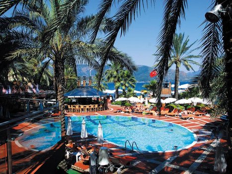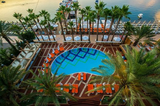Mehmonxona Marmaris markazida joylashgan. U turli kategoriyadagi sayyohlarning didiga mos keladi va faol dam olish, ekskursiyalar yoki tinch plyaj dam olishi uchun juda qulay. Mehmonxona hududi katta bo‘lmasa ham, chiroyli va yaxshi jihozlangan. Xonalar bir-biri bilan yo‘lak orqali bog‘langan ikki besh qavatli binoda joylashgan. Xona variantlariga standart, qirollik va prezident lyukslari kiradi. Xonalar ta’mirlangan, interyeri zamonaviy klassik uslubda ishlangan va uy shinamligini his qiladi. Derazalarda hovuz yoki qo‘shni mehmonxona hududi ko‘rinadi. Har bir xonada balkon, shuningdek, vannalar yoki dush mavjud. Wi-Fi xonalarda yaxshi ishlaydi, lekin ba’zida qayta avtorizatsiya talab qilinadi. Mehmonxona hududida Wi-Fi beqaror ishlaydi. Mehmonxona binolari yaqinida barlari bilan ikkita ochiq hovuz mavjud. Qum va toshchalardan iborat plyaj mehmonxonaga juda yaqin, tor qirg‘oq yo‘lini kesib o‘tish kifoya. Plyaj kichik bo‘lsa ham, ko‘plab шезлонгlar mavjud. Ikki narvon bilan jihozlangan pirgda qulay matraslarda quyoshga yotish mumkin. Mehmonxona kechgacha “hammasi qo‘shilgan” tizimida ishlaydi. Ovqatlanish juda xilma-xil va sifatli. Kunning o‘rtasida gazaklar, pishiriqlar va fast-fud taklif etiladi. Barlarda tushdan keyin kofe-breylar o‘tkaziladi. Mehmonxonada animatsion dastur boy. Kunduzi sport va o‘yin tadbirlari o‘tkaziladi, kechasi esa asosiy hovuz yonida qiziqarli shoular va artistlarning chiqishlari bo‘lib o‘tadi. Mehmonxonada sport zal, bilyard, suvenirlar va zargarlik buyumlari do‘konlari, shuningdek, velosiped ijarasi mavjud. Ochiq havoda tennis stollari bor. Mehmonxona hududida turk hammomi va saunasi bo‘lgan SPA-markaz ishlaydi. Massaj ochiq havoda yog‘och ayvonlarda o‘tkazilishi mumkin. Bolalar uchun mehmonxona hududida bolalar klubi, kichik hovuz va yumshoq qoplamali o‘yin maydonchasi mavjud. Mehmonxonadan tashqarida ko‘p sayr joylari bor: qirg‘oq yo‘li, shahar akvaparki, bar ko‘chasi, do‘konlar, kafelar, restoranlar va savdo markazlari. O‘zingizni shu mehmonxonada tasavvur qiling. Ertalab uyg‘onasiz, balkon eshigini ochasiz va hovuzning panoramali ko‘rinishi sizni kutadi. Keyin nonushtaga borasiz, har xil taomlar sizni kutmoqda. Kunduzi plyajga borib, quyoshda yotishingiz yoki faol dam olish turlari bilan shug‘ullanishingiz mumkin. Kechqurun esa qiziqarli shoular va artistlarning chiqishlaridan zavqlanasiz. Bu siz va oilangiz uchun ideal dam olishdir.